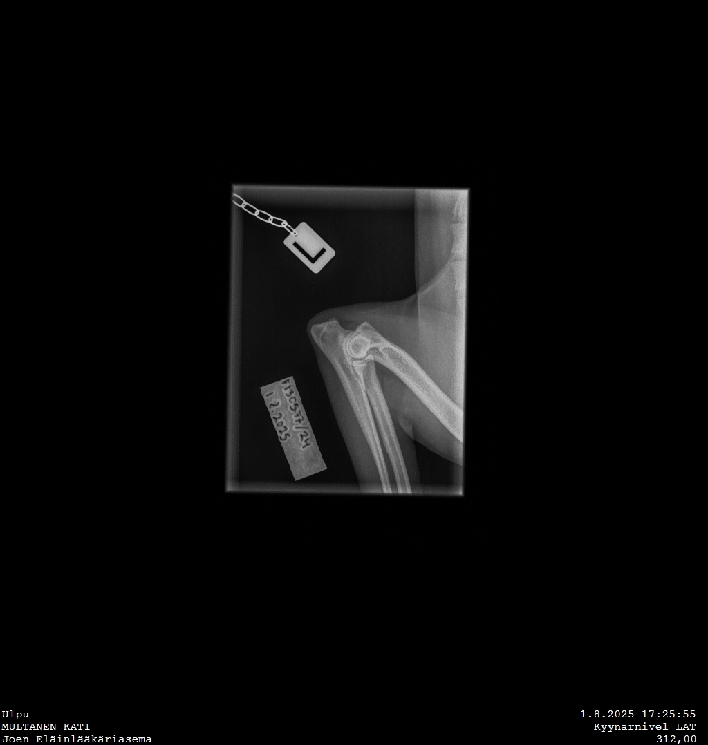 Tuittu läpivalaistiin hienoilla tuloksilla! Lonkat A/A, kyynärät 0/0, olat terveet, selkä LTV0, VA1. (Viimeisessä rintanikamassa vaillinaisesti kehittyneet kylkiluut)